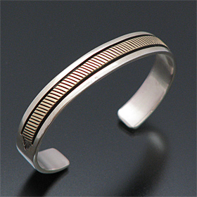 | NAVAJO/ナバホ族の人気アーティスト Bruce Morgan/ブルース・モーガンが制作したバングルです。 シンプルながらも洗練されたゴールド使いと深く正確なスタンプ、そして高級感も抜群で、年齢やスタイルを問わないコーディネイトをお楽しみ頂けます。 ブルース・モーガン氏は1970年からシルバースミスとして活動をスタートした、ナバホ族のベテランアーティストになります! ※サイズは多少変更が出来ますのでお気軽にお問い合わせくださいませ。 | ||