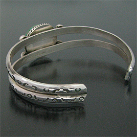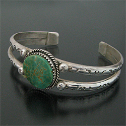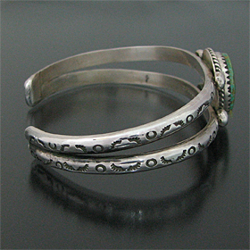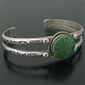 タオス プエブロ Sonny Spruce ターコイズ スタンプワーク バングル [R1-074]