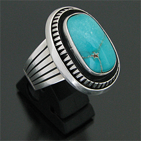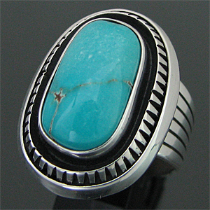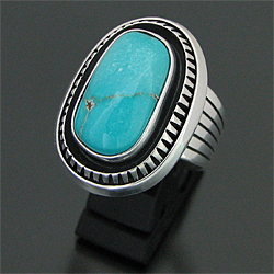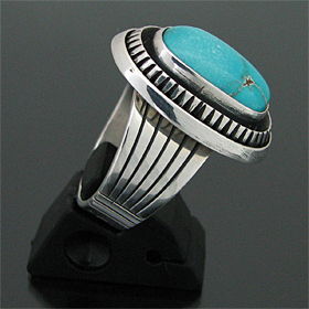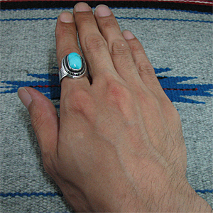 ナバホ族 Leonard Nez ローンマウンテン ターコイズ リング 19号 [R1-095]