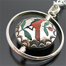 | ZUNI/ズニ族の人気アーティスト Quinton Quam/クゥイントン・クアムが制作したリバーシブルのネックレスです! フラットインレイという技法を用いた作品で、ペンダントの表面は凹凸が無く平面的に仕上がっています。 バードがモチーフになっており、ブルーの鳥と赤い鳥の2羽とも羽を休めている様子を忠実に写実した、とても美しい作品です。 リバーシブルタイプとなっておりますので、1度に2度楽しめる仕様となっております! とてもフェミニンで女性らしいフラットインレイの作品は、女性に人気のアイテムで、大切な方へのプレセントにも最適です♪ オーバル型の女性らしい華やかなデザインに魅了されますね♪ | ||