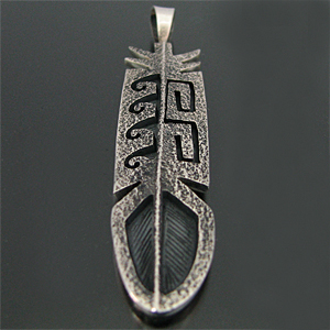ホピ族 Gerald Lomaventema フェザー オーバレイ トゥーファーキャスト ペンダント [R1-229]