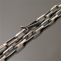 | HOPI/ホピ族が制作したシルバーチェーンです。 他のチェーンと比較すると重量感があり、そして丈夫なつくり、いぶし仕上げの存在感があるチェーンです! 特徴としては、ナバホチェーン程丸みがなく、より味わい深い雰囲気をお楽しみいただけます♪ また長さの調整が可能になっているので、ペンダントトップの位置を自由に変更でき、他のトップにも使い回しが利きますので非常に便利です。 ※お持ちのペンダントトップのバチカン(チェーンを通す穴)のサイズを確認してみてください。 | |