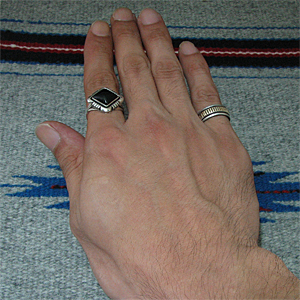 ナバホ族 Lonnie Willie オニキス シルバー リング 16号 [R1-170]