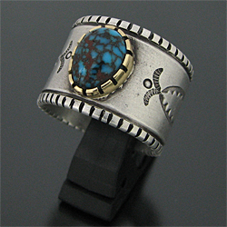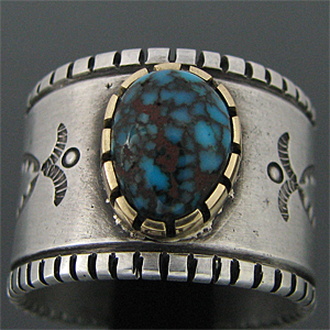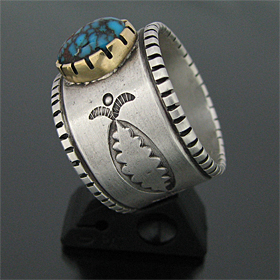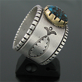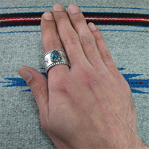 ナバホ族 Darryl Begay ランダーブルー コインシルバー 18K リング 24.5号 [R2-046]