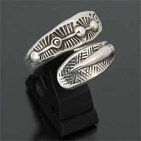 ナバホ族 Norbert Peshlakai スタンプワーク アジャスタブル リング 17号 [R1-102]