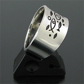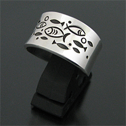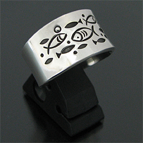 ナバホ族 Norbert Peshlakai スタンプワーク フィッシュ オーシャン リング 18号 [R1-100]