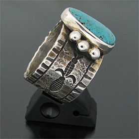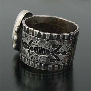 ナバホ族 Lyndon Tsosie キングマン スタンプワーク コインシルバー リング 23.5号 [R1-098]