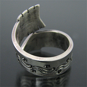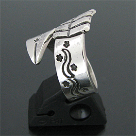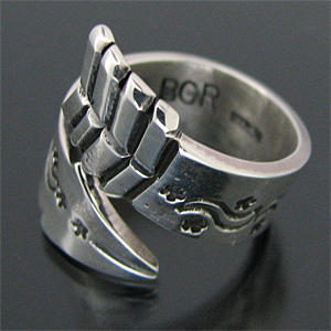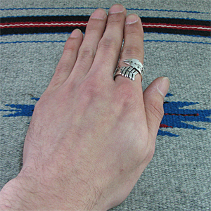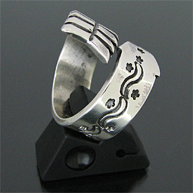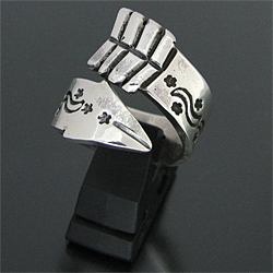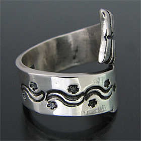 | NAVAJO/ナバホ族の人気アーティスト Gary Reeves/ゲーリー・リーブスの息子 Bo Reeves/ボー・リーブスが制作したアロー(矢)デザインのリングです。 アローが指に巻きつくようにデザインされており、父親譲りのスタンプワークがリング全体に施されています。 シンプルでスタイリングしやすく、インディアンジュエリーらしさを感じるデザインには目を惹きます。 トラディショナルなデザインで、とてもバランス良く仕上がっています。 | ||
