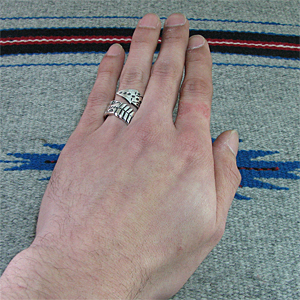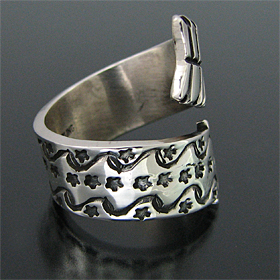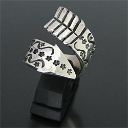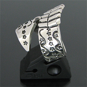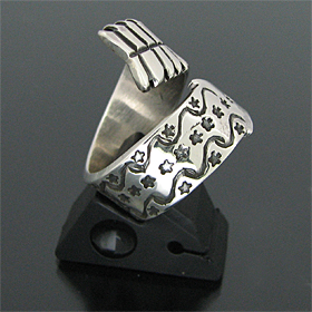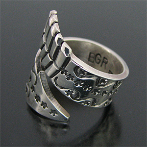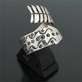| NAVAJO/ナバホ族の人気アーティスト Gary Reeves/ゲーリー・リーブスの息子 Bo Reeves/ボー・リーブスが制作したアロー(矢)デザインのリングです。 アローが指に巻きつくようにデザインされており、父親譲りのスタンプワークがリング全体に施されています。 シンプルでスタイリングしやすく、インディアンジュエリーらしさを感じるデザインには目を惹きます。 トラディショナルなデザインで、とてもバランス良く仕上がっています。 | ||