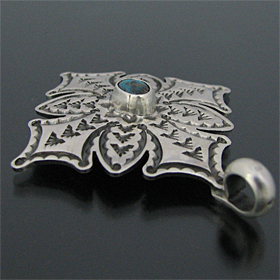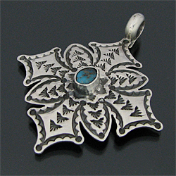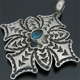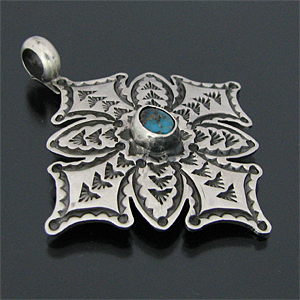 ナバホ族 Sunshine Reeves キングマン クロス スタンプワーク ペンダント [R3-090]