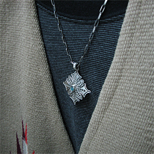 | 数多くの賞を獲得しているNAVAJO/ナバホ族の人気アーティスト Sunshine Reeves/サンシャイン・リーブスが制作したペンダントです。 クロスデザインに、センターにキングマン(ターコイズ)をセットして頂きました。 スタンプワークの名手だけあって奥深いスタンプが巧みに施されており、トラディショナルなデザインに仕上がっています。 長年お使い頂くと味わい深い作品になります。 また、オールド感漂うこれぞナバホジュエリーという感じのインディアンジュエリーは、大変魅力的です。 ホピチェーン・ナバホチェーンとのバランスを考えて制作して頂きましたので、相性も抜群です。 兄であるGary Reeves/ゲーリー・リーブスと共にナバホを代表するスタンプワークの名手。細かく美しく繊細なデザインが特徴で、インディアンジュエリーのショーの中でも権威のあるサンタフェインディアンマーケットやギャラップなどでの賞を多数獲得しているナバホを代表するトップアーティストの一人です。2012年のインディアンマーケットの審査員に選ばれています。 | ||