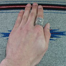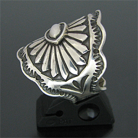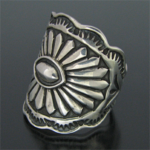 | 数多くの賞を獲得しているNAVAJO/ナバホ族の人気アーティスト Sunshine Reeves/サンシャイン・リーブスが制作したリングです。 力強く精巧なスタンプワーク、名手だけあって奥深いスタンプが巧みにリング全体に施されています。 スタンプのみのシンプルで飽きのこないオールドスタイル、指を包み込む様なリング幅の広いサイズです。 スタンプは彼の独自のセンスから生まれたオリジナルデザインになります。 兄のGary Reeves/ゲーリー・リーブスと共に、ナバホ族を代表するスタンプワーク技術の持ち主だけあって、センスと技術が巧みに融合されており、アンティークな雰囲気が楽しめるリングに仕上がっています。 シンプルでスタイリングしやすく、インディアンジュエリーらしさを感じる事ができるトラディショナルなデザインは、とてもバランス良く仕上がっています。 単体ではもちろん、他のリングと合わすのにもバランス良くお使い頂けるアイテムです。 | ||
