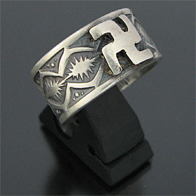 ナバホ族 Gary Reeves スワスティカ スタンプワーク リング 20号 [R3-102]