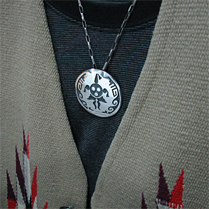 ホピ族 Griselda Saufkie マッドヘッド オーバーレイ ブローチ ネックレス [R3-052]