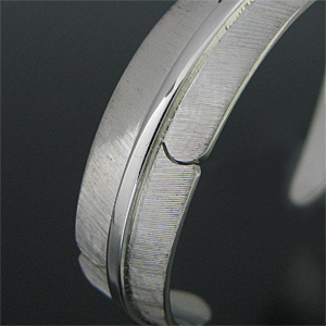 | 数多くの受賞歴を持つISLETA/イスレタ族の有名アーティスト Michael Kirk/マイケル・カークが制作したバングルです。 【マイケル・カーク】はナバホ族の【ハーヴィー・メイス】、サントドミンゴ族の【ハーヴィー・チャべス】と並んで、イーグルフェザーのモチーフで有名なベテランアーティストです。 フェザーの風合いを出すために、細い【たがね】を用いて正確に線を引いて制作されています。 見事に表現された彼のイーグル・フェザーは、まるで本物のフェザーのように見事な仕上がりで、見るものを魅了します。 こちらのバングルはスタイリングしやすい幅で、流行などに左右されないフェザーモチーフは、今尚インディアンジュエリーを代表する人気モチーフの一つです。 着用すると、イーグルの羽に包まれているような感覚に陥ります。 サイズ調整も可能ですので、お気軽にご相談ください。 | ||