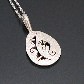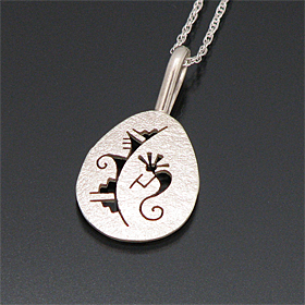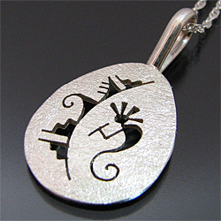 | 賞も獲得しているZUNI/ズニ族のアーティスト Myron Panteah/マイロン・パンテアが制作したネックレスです。 他のズニ族が制作するジュエリーとは異なり、ストーンを使用することなく、ホピ族のアーティストのように糸鋸でモチーフをカットした、アーティストならではの作品に仕上がっております! こちらの作品はココペリがデザインされており、表面のテクスチャーがより深みを引き出す仕上げとなっています。 着けやすいサイズで、男女問わずお勧めのネックレスです♪ | ||