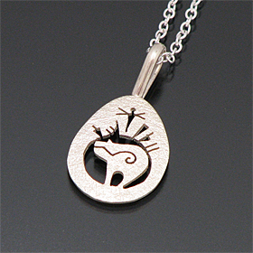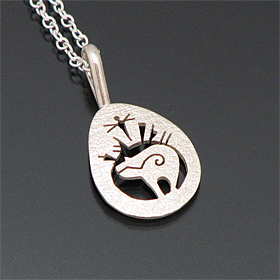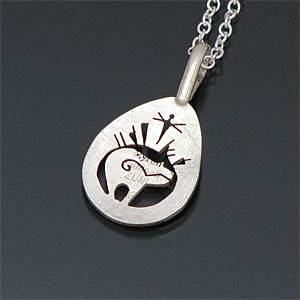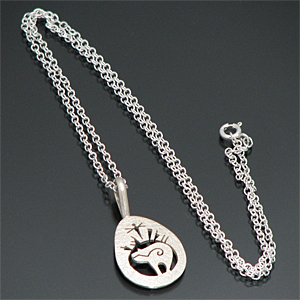 | 賞も獲得しているZUNI/ズニ族のアーティスト Myron Panteah/マイロン・パンテアが制作したネックレスです。 他のズニ族が制作するジュエリーとは異なり、ストーンを使用することなく、ホピ族のアーティストのように糸鋸でモチーフをカットした、アーティストならではの作品に仕上がっております! こちらの作品はベアー(熊)がデザインされており、表面のテクスチャーがより深みを引き出す仕上げとなっています。 着けやすいサイズで、男女問わずお勧めのネックレスです♪ | ||