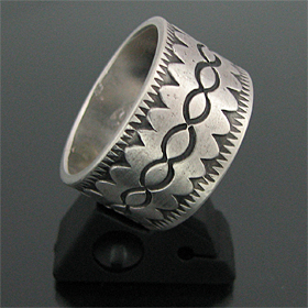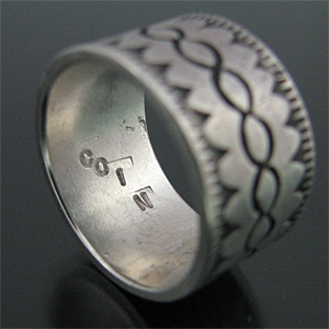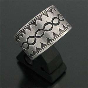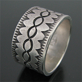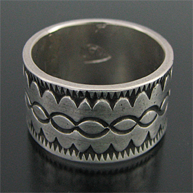 ナバホ族 Darryl Begay スタンプワーク コインシルバー リング 23号 [R4-065]
