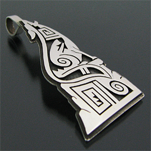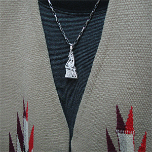 | HOPI/ホピ族の有名アーティスト Berra Tawahongva/ベラ・タワホングヴァが制作したペンダントです。 オーバーレイ技法を用いて、知性の象徴であり、霊的な世界へ行くことができる聖なる存在、コヨーテがデザインされています。 山頂からコヨーテが空に向かって遠吠えをしている様子が、忠実に表現されています。 滑らかな曲線と柔らかい独特のタッチは、一目で彼の作品だと判ります。 一つ一つの作品の仕上がりはとても美しく、非常に精度の高いカット技術、デザイン性共に素晴らしいアーティストの一人です。 味わい深いホピチェーンと組み合わせるのがお勧めです。 | ||