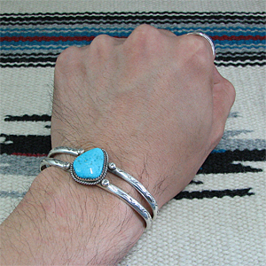 タオス プエブロ Sonny Spruce ターコイズ 甲丸ワイヤー バングル [R4-149]