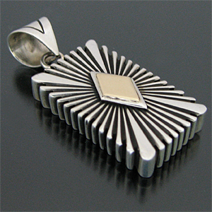 ナバホ族 Pat Bedonie サンバースト 14K スクエア ペンダント [R4-005]