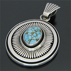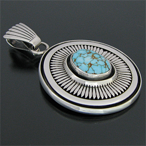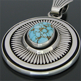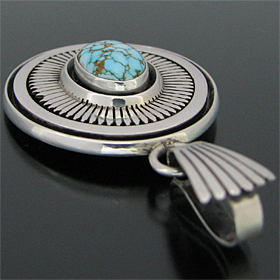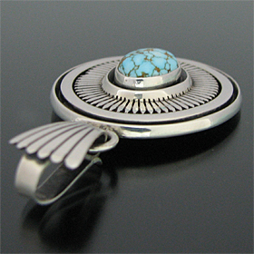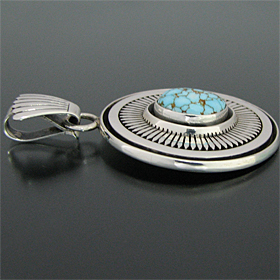 ナバホ族 Leonard Nez ナンバーエイト フェザー オーバーレイ ペンダント [R5-039]