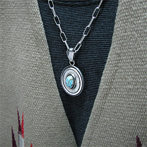 | NAVAJO/ナバホ族のアーティスト Leonard Nez/レオナルド・ネズにナンバーエイト(ターコイズ)を渡して制作依頼をしたペンダントです。 こちらは彼の奥様【マリアン・ネズ】が10数年前から愛用しているスギライトのペンダントを、スタイリングしやすく少し小さくして頂いた【マリアン】モデルのペンダントです。 スタイリッシなフォルムに、リバーメールコレクションの一つ【ナンバーエイト】と使用して頂きました。彼の作風は崩さずに、代表的デザインの【フェザー】を用いて頂き、着けやすさを考えたバランスのよい作品に仕上がりました。 彼の作品のベゼル部分は現在では3層に重ねて制作されているものが主流ですが、こちらはシンプルな構造で【シャドーボックス】といわれる石の周りに溝を作り黒くする事で奥行きを出し、立体的な仕上がりとなる技法で当時の作品を再現しています。 丁寧に、そして精巧にデザインされたお勧めのペンダントです。 ホピチェーン・ナバホチェーンとのバランスを考えて制作して頂きましたので、相性も抜群です。 | ||