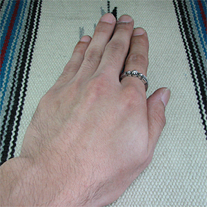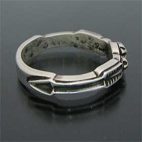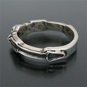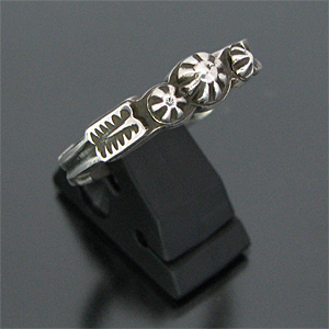 | NAVAJO/ナバホ族の人気アーティスト Gary Reeves/ゲーリー・リーブスの息子 Bo Reeves/ボー・リーブスが制作したアロー(矢)デザインのリングです。 両サイドにスタンプでデザインされたアローと、センターには3つのアポロコンチョのアップリケがついた、オールドスタイルのリングです。 細い幅に詰め込まれたナバホ族の伝統を感じる事が出来る作品、他のリングとの組み合わせもしやすく、シンプルにインディアンジュエリーをアピール出来るアイテムです。 サイズ直しは可能ですので、ご希望の方はお問合せ下さい。 | ||