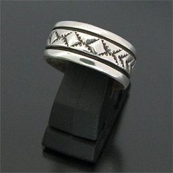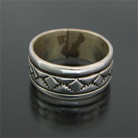 | NAVAJO/ナバホ族のアーティスト Bruce Morgan/ブルース・モーガンに制作依頼をしたリングです。 シンプルながらも深く正確なスタンプ、年齢やスタイルを問わない組み合わせがお楽しみ頂けます。 細かく規則的なナバホ族の伝統的デザインが施されており、シンプルに着けたい方、他のリングと組み合わせたい時などに重宝するアイテムです。 シンプルでモダンな彼の作品は、幅広い層から支持を得ています。 | ||