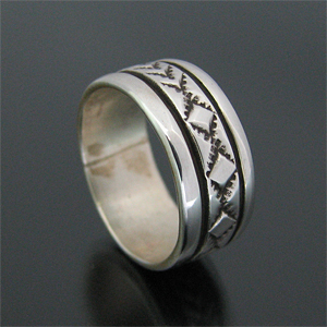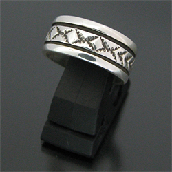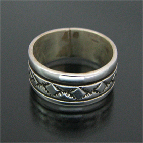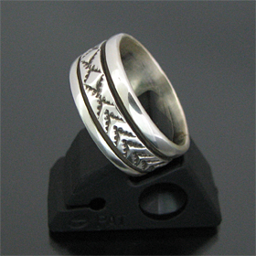 | NAVAJO/ナバホ族のアーティスト Bruce Morgan/ブルース・モーガンに制作依頼をしたリングです。 シンプルながらも深く正確なスタンプ、年齢やスタイルを問わない組み合わせがお楽しみ頂けます。 細かく規則的なナバホ族の伝統的デザインが施されており、シンプルに着けたい方、他のリングと組み合わせたい時などに重宝するアイテムです。 シンプルでモダンな彼の作品は、幅広い層から支持を得ています。 | ||