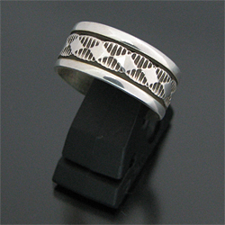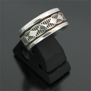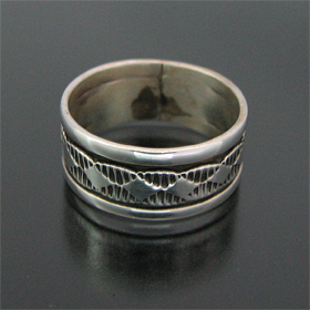 | NAVAJO/ナバホ族のアーティスト Bruce Morgan/ブルース・モーガンに制作依頼をしたリングです。 シンプルながらも深く正確なスタンプ、年齢やスタイルを問わない組み合わせがお楽しみ頂けます。 細かく規則的なナバホ族の伝統的デザインが施されており、シンプルに着けたい方、他のリングと組み合わせたい時などに重宝するアイテムです。 シンプルでモダンな彼の作品は、幅広い層から支持を得ています。 | ||