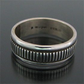 | NAVAJO/ナバホ族のアーティスト Bruce Morgan/ブルース・モーガンに制作依頼をしたリングです。 シンプルながらも深く正確なスタンプ、年齢やスタイルを問わない組み合わせがお楽しみ頂けます。 細かく規則的なナバホ族の伝統的デザインが施されており、シンプルに着けたい方、他のリングと組み合わせたい時などに重宝するアイテムです。 シンプルでモダンな彼の作品は、幅広い層から支持を得ています。 | ||