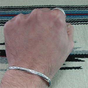 タオス プエブロ Sonny Spruce スタンプワーク 甲丸ワイヤー バングル [R6-068]