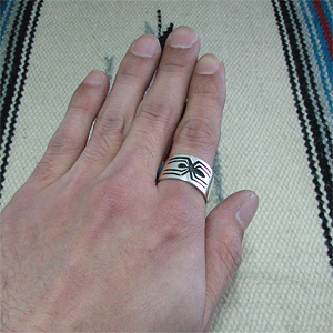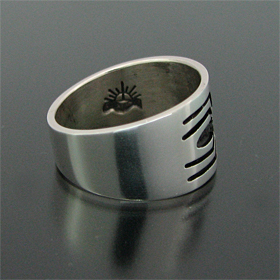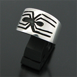 | HOPI/ホピ族のベテランアーティスト Anderson Koinva/アンダーソン・コインヴァに制作を依頼をしたリングです。 オーバーレイ技法を用いて、【スパイダー】のデザインが施されています。 ホピの伝説に因れば、蜘蛛は赤土と自分の出す糸を混ぜあわせて人間を作ったとされ、『創造性』や『独創性』を意味し、人間の副創造主を表しています。 デザインはスパイダーのみのシンプルなデザインですが、鏡面仕上げにする事によって、黒と銀のコントラストがしっかりと利いている作品に仕上がりました。 経年変化と共にホピジュエリー特有の味わい深いアイテムをお楽しみ下さい。 | ||