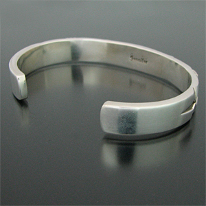| NAVAJO/ナバホ族の女性アーティスト Jennifer Curtis/ジェニファー・カーティスに制作を依頼したバングルです。 肉厚のシルバーに、深く正確なスタンプが施されており、多面的な造形を作り出すエッチング技法を取り入れた、彼女の代表的作品になります。 シンプルでスタイリングのしやすい9mm幅、飽きの来ないデザインです。 父親から受け継いだ技術とスタイルの中に、女性らしさが兼ね備わった作品です。 | ||