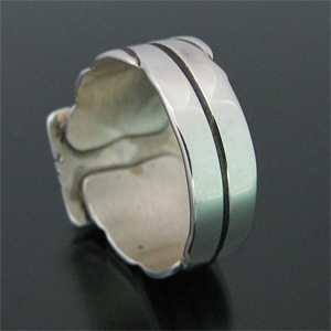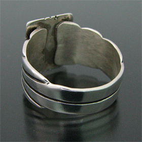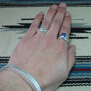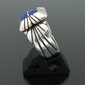 | NAVAJO/ナバホ族のアーティスト Chester Benally/チェスター・ベナリーに制作を依頼をしたリングです。 シルバーの板で仕切りを作り、その枠の中へターコイズやシェル、コーラル等の石や貝殻等を細かくカットした物をはめ込んでデザインを作っていく【チャンネルインレイ】を用いて制作されています。 独自のカット技術で、立体感のある台形に仕上げられており、美しさと芸術性を兼ね備えている作品です。 | ||