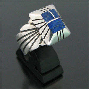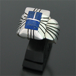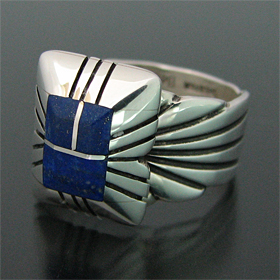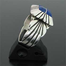 ナバホ族 Chester Benally ラピスラズリ チャンネルインレイ リング 21号 [R7-103]