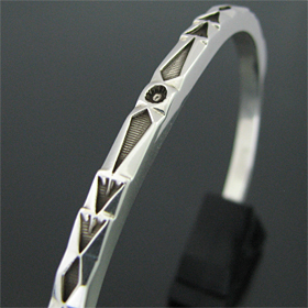 ナバホ族 Jennifer Curtis スタンプワーク スクエアワイヤー バングル [R7-060]