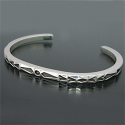 | NAVAJO/ナバホ族の女性アーティスト Jennifer Curtis/ジェニファー・カーティスに制作を依頼したバングルです。 肉厚のシルバーに、深く正確なスタンプワークが施されており、多面的な造形を作り出すエッチング技法を取り入れた、彼女の代表的作品になります。 シンプルでスタイリングのしやすい4mm幅は、2〜3本重ねて着けれる遊び心があります。 父親から受け継いだ技術とスタイルの中に、女性らしさが兼ね備わった作品です。 | ||
