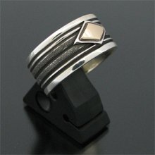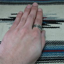 | NAVAJO/ナバホ族の女性アーティスト Patricia Bedonie/パトリシア・べドニーに制作を依頼をしたリングです。 鏡面仕上げと、表面に刻みを入れたエングレービングをミックスさせた、リバーメールのオリジナルデザインになります。 シンプルですが、コントラストが際立つ作品に仕上がりました。 センターには14K&シルバーを組み合わせた、ダブルダイヤモンドになっています。 | ||