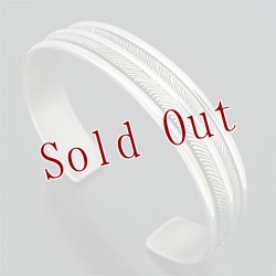 | NAVAJO/ナバホ族のアーティスト Harvey Mace/ハーヴィー・メイスに制作を依頼したフェザーモチーフのバングルです。 スタイリッシュな作品に仕上がっている、リバーメールのオリジナルデザインで制作して頂きました。 フォルムはフェザーの芯からはじまり、フェザーの形で終わるように仕上げられています。 流行に左右されないすっきりとしたシンプルなデザイン、主張しすぎないフェザーの柔らかさが大変魅力的な作品です。 ※サイズは多少変更が可能です。 | ||