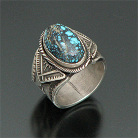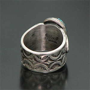 ナバホ族 Gary Reeves チャイニーズターコイズ スタンプワーク リング 16号 [NR-0015]