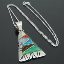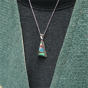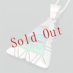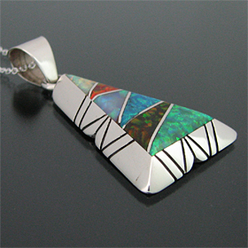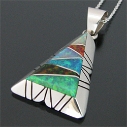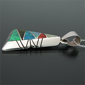 ナバホ族 Chester Benally チャンネルインレイ オパールマルチカラー ネックレス [R8-103]