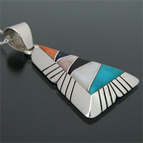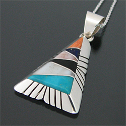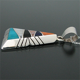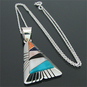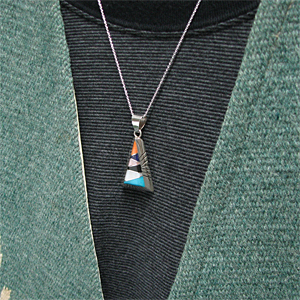 ナバホ族 Chester Benally チャンネルインレイ マルチカラー ネックレス [R8-102]