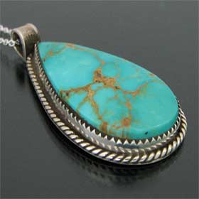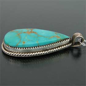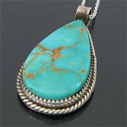 | TAOS/タオス族のアーティスト Sonny Spruce/ソニー・スプルースが制作したネックレスです。 シンプルな台座にティアドロップ型のターコイズマウンテンを使用しています。 飾り気はないですが、アンティークジュエリーのように伝統的スタイルがしっかりと伝わってきます。 石の色、形ともに申し分なく、現代作家が手掛ける独特の古美感をお楽しみ下さい。 | ||