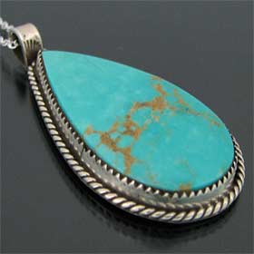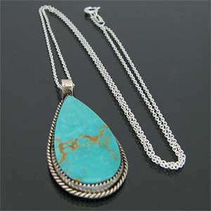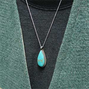| TAOS/タオス族のアーティスト Sonny Spruce/ソニー・スプルースが制作したネックレスです。 シンプルな台座にティアドロップ型のターコイズマウンテンを使用しています。 飾り気はないですが、アンティークジュエリーのように伝統的スタイルがしっかりと伝わってきます。 石の色、形ともに申し分なく、現代作家が手掛ける独特の古美感をお楽しみ下さい。 | ||