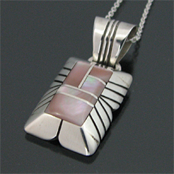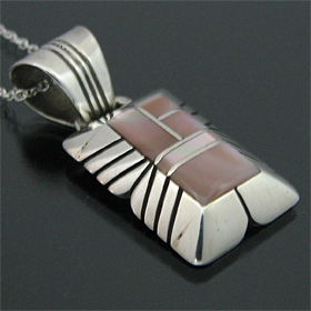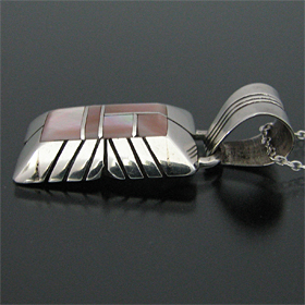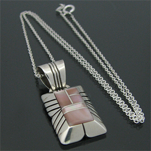 ナバホ族 Chester Benally チャンネルインレイ ピンクシェル ネックレス [R8-083]