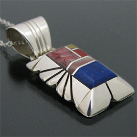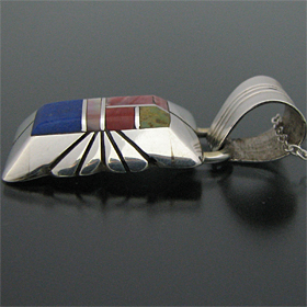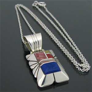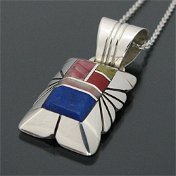 ナバホ族 Chester Benally チャンネルインレイ マルチカラー ネックレス [R8-087]