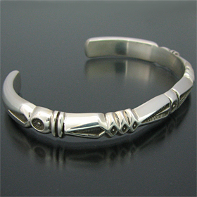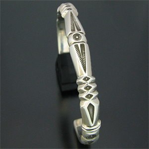 ナバホ族 Jennifer Curtis スタンプワーク ハーフラウンドワイヤー バングル [R9-066]