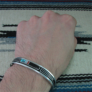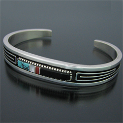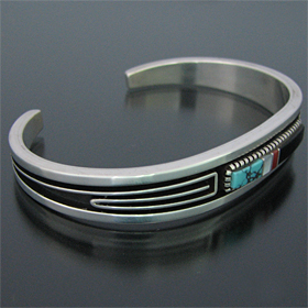 ナバホ族 Albert Nells オーバーレイ チャンネルインレイ バングル [R10-049]